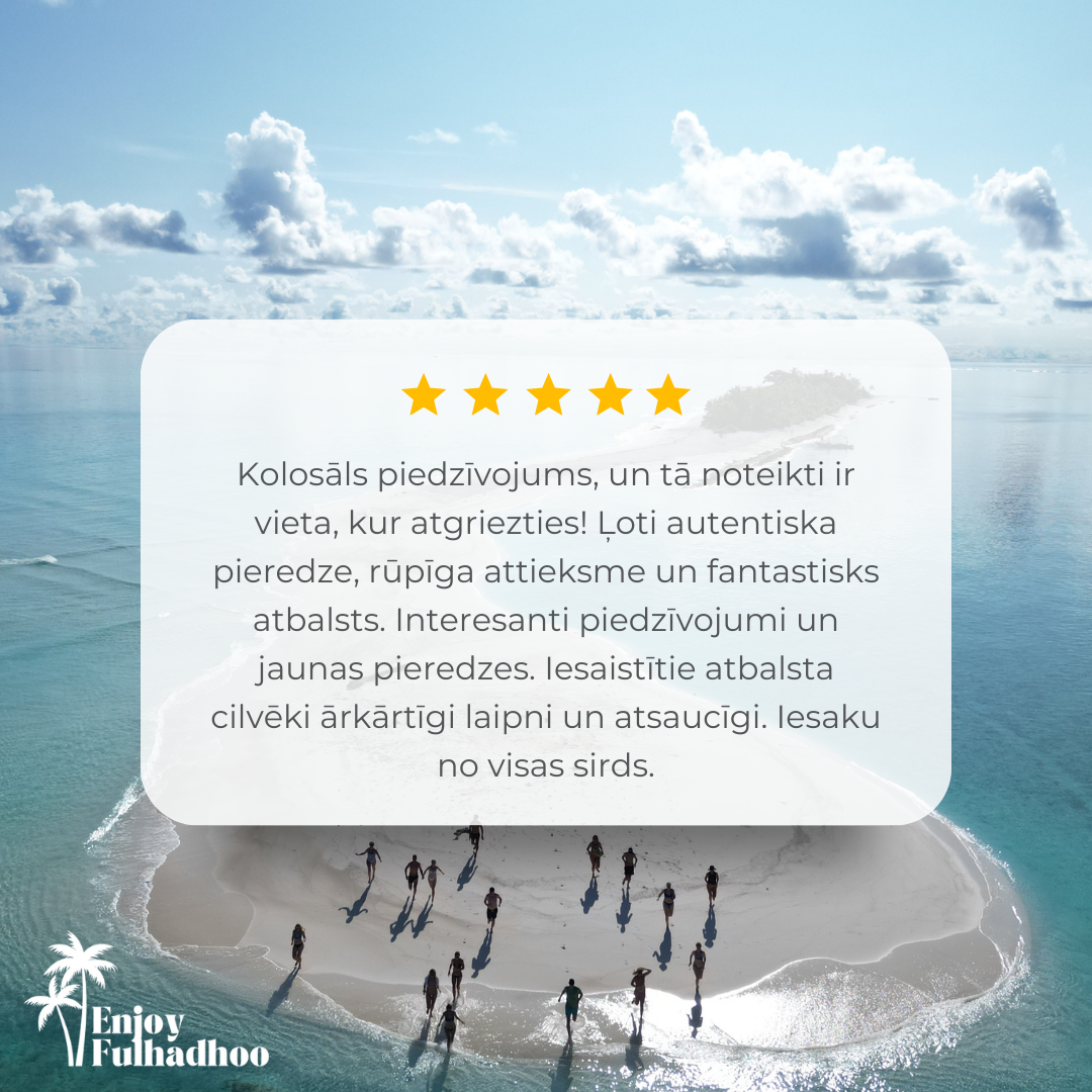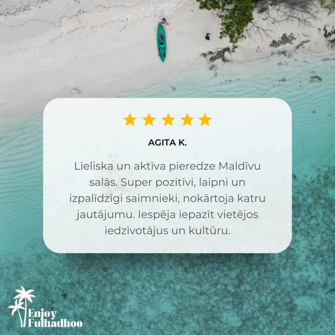Lai izbaudītu ceļojumu pilnībā, iesakām iegādāties grupas ekskursiju piedāvājumu, esot Fulhadhoo.
